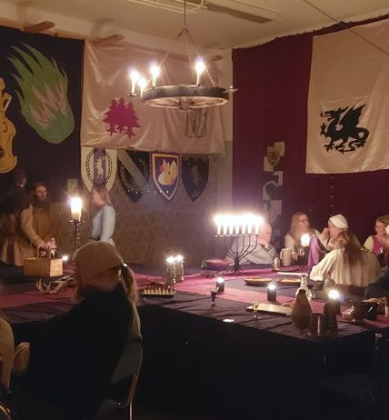 Our indoor Fighter practice happens on odd weeks on Thursday evenings, and our Archery practice on even weeks on Thursday evenings, both from 18:00 to 20:00 . We meet at Sunnanåskolan, Skråmträskvägen 19. Come join us and give medieval style armoured combat a try, or try your hand at archery. No experience necessary.